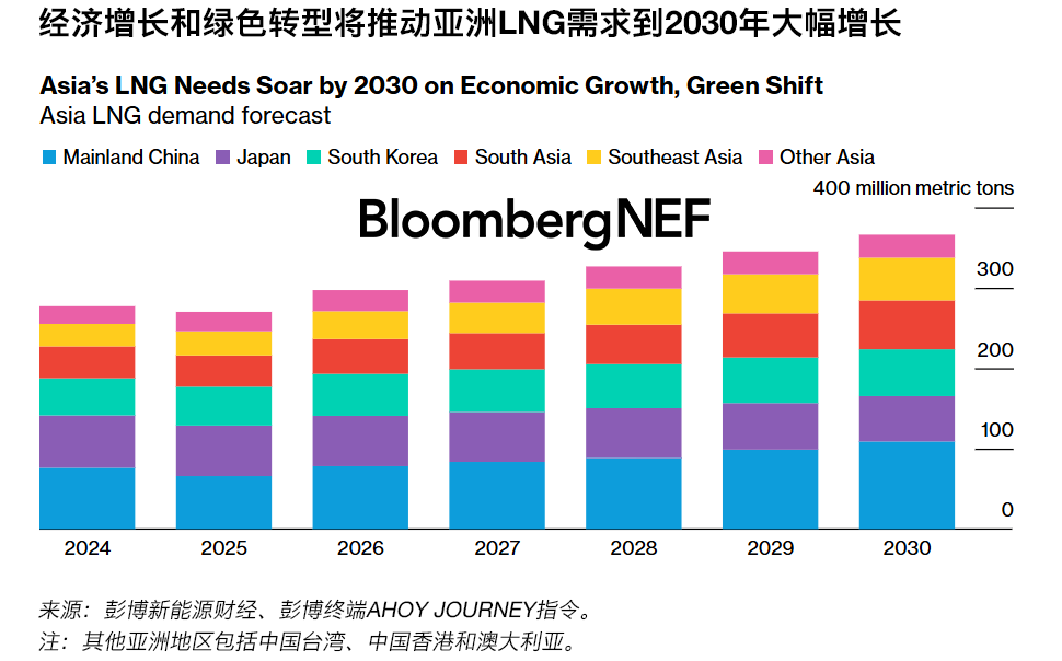 2030年亚洲天然气市场展望发表时间:2025-07-18 11:02 32% 2024年至2030年亚洲LNG需求增幅预测 8,600万吨 预计到2030年亚洲LNG需求中未被长协覆盖的部分 3,300万吨 2024年至2030年间中国大陆LNG进口量预期增幅 到本十年末,亚太地区的液化天然气(LNG)需求预计将增长近三分之一,主因脱碳、经济增长、基础设施扩张、天然气供应缺口以及LNG价格竞争力提高。LNG需求增长将超过协议签署量,促使亚洲买家寻求新的供应协议。 ![]() 到2030年,亚洲的LNG需求预计将达到3.66亿吨,较2024年增加8,900万吨。中国大陆、东南亚和南亚预计将引领这一增长,而日本将是同期唯一需求下降的市场。 在脱碳努力和天然气基础设施扩建的推动下,工业天然气需求将增长,尤其是中国和南亚地区。在电力领域,随着煤炭逐步淘汰、可再生能源发电增加,以及经济增长和数据中心快速扩张推动电力需求激增,天然气在实现低碳、更灵活的电力系统方面发挥着关键作用。与此同时,因天然气相对于柴油和汽油的成本优势,以及加注基础设施的快速发展,中国和印度交通运输领域的天然气需求有望强劲增长。 虽然中国和日本已做好准备,通过长协能够满足其LNG需求,但东南亚、韩国和南亚的协议签署速度却日益落后于需求的快速增长。这些市场的买家需要签订新协议以满足不断增长的LNG需求。 因预计全球LNG供应将激增,亚洲现货LNG期货价格呈下降趋势,这将推动对成品油的替代增加。然而,由于煤炭价格可能仍低于天然气,大规模煤改气需要政策支持。 |